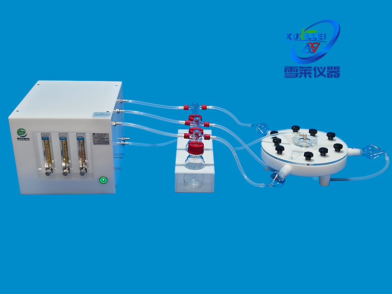 2. 磨口誘集瓶(100ml或50mnl)連接活動室各通道,食品級硅膠管將誘集瓶與螺口氣味瓶連接,活動室中間抽氣孔與操作箱右側(cè)面右下方不銹鋼抽氣孔連接。(如選配有暗箱,將活動室放入箱體內(nèi)連接好誘集瓶,再用硅膠管穿過暗箱左側(cè)預(yù)留孔連接氣味瓶與操作箱右側(cè)抽氣孔)